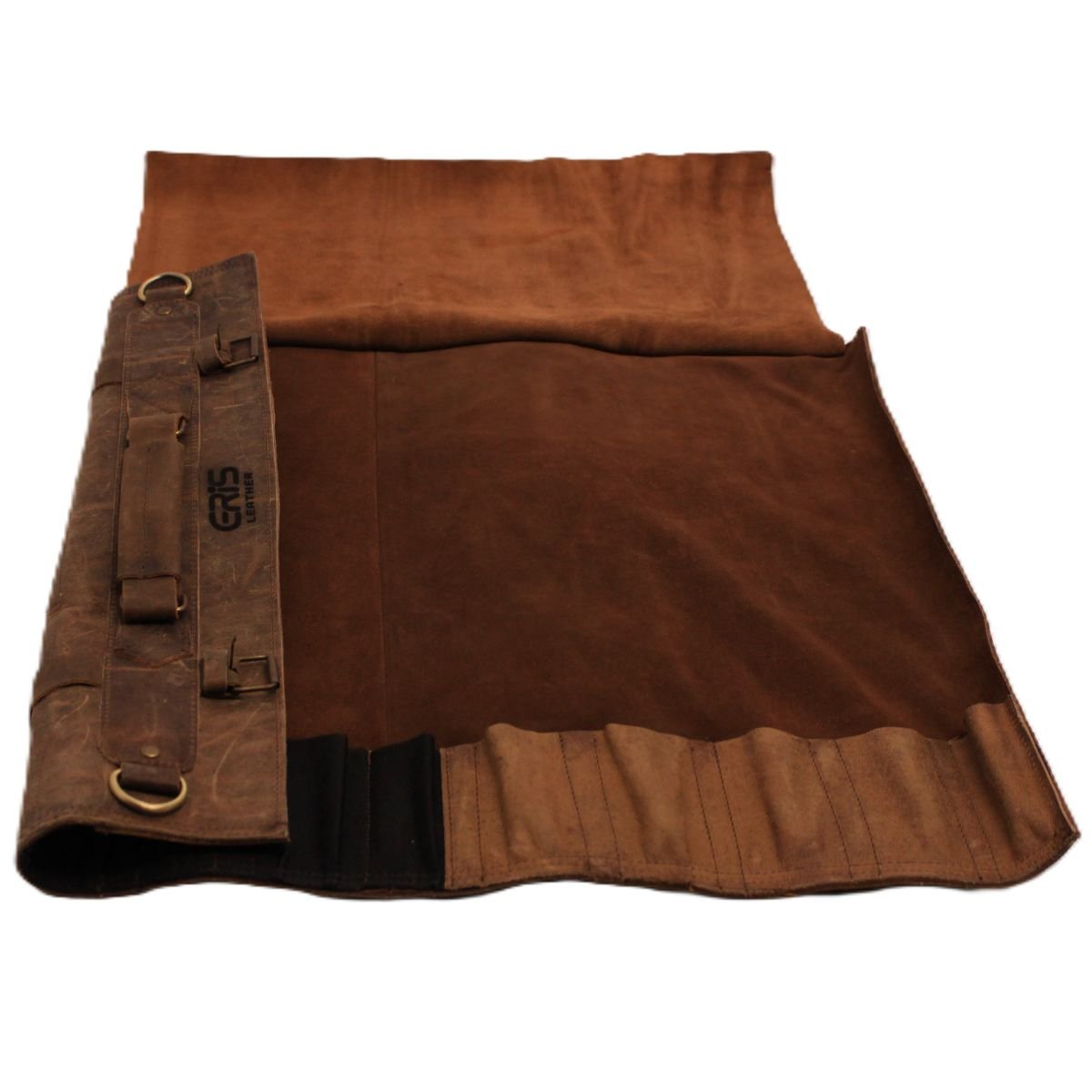 A good knife roll should do one thing well: protect the tools you rely on. This one does exactly that. It’s built for chefs who work hard and need gear that keeps up. Each customized leather brown knife roll is cut and stitched by hand from full-grain cowhide leather, the kind that starts out firm and breaks in beautifully with time. Every mark, every crease tells the story of the kitchens it’s seen. Inside, each knife has its own secure place, easy to reach when you need it. When the work’s done, it folds tight and fastens with solid brass buckles.